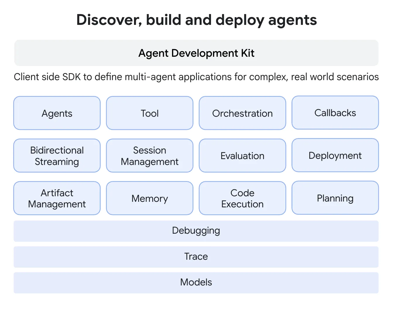 Google Agent Development Kit (ADK) は、AIエージェントを効率的に構築・管理・評価・デプロイするためのオープンソースフレームワーク。
