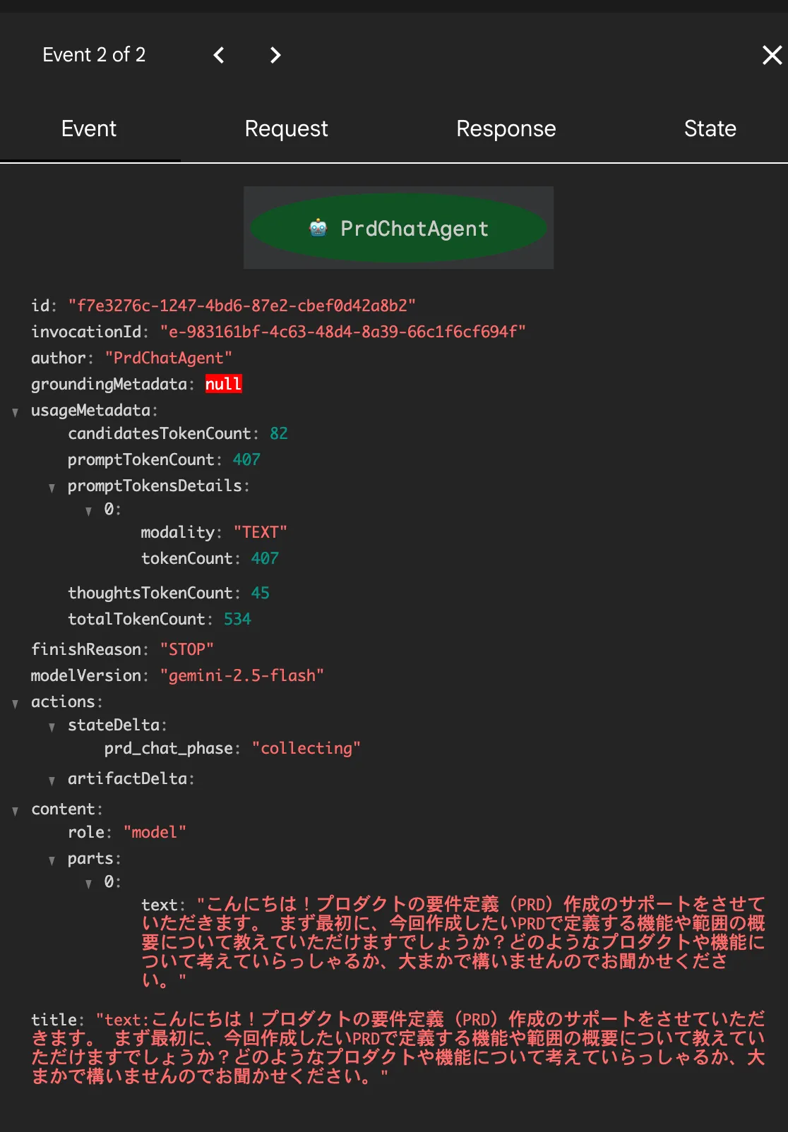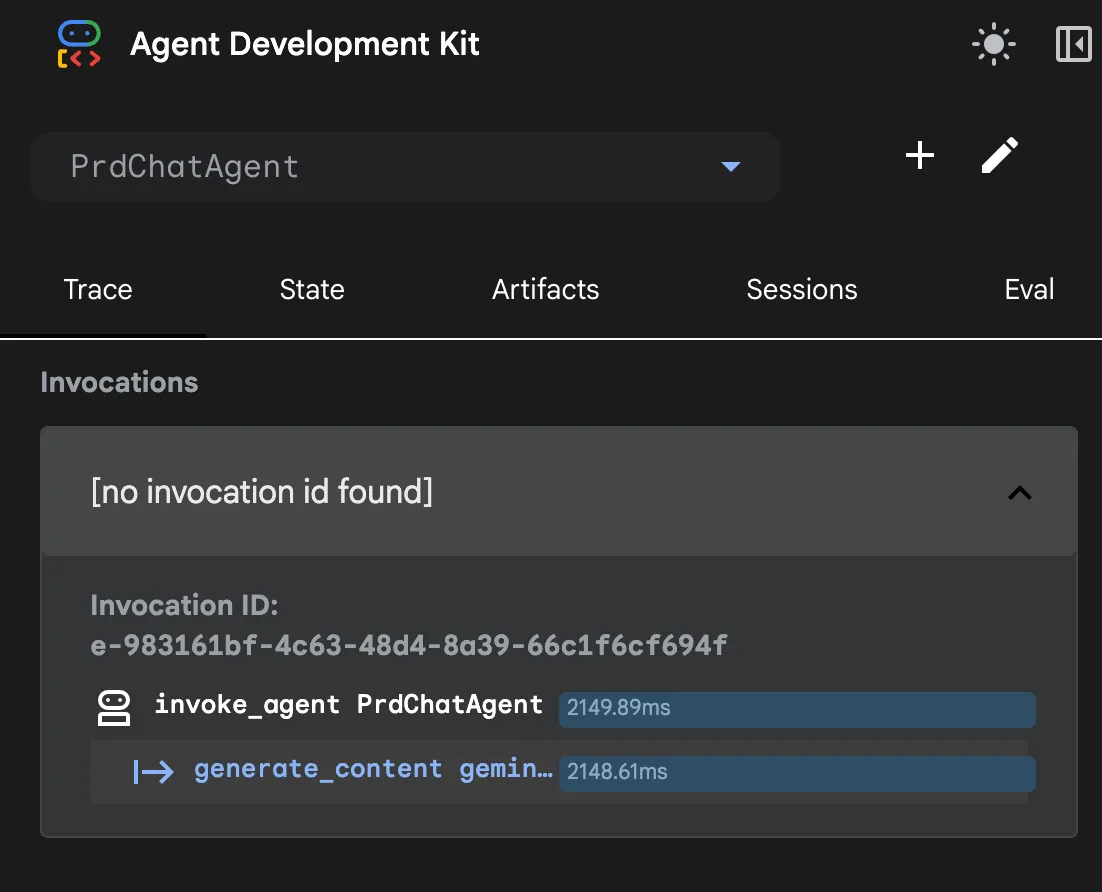 ADK には Web UI 機能がある。これを使うことで、エージェントの内部的な動作を詳細に追跡できる