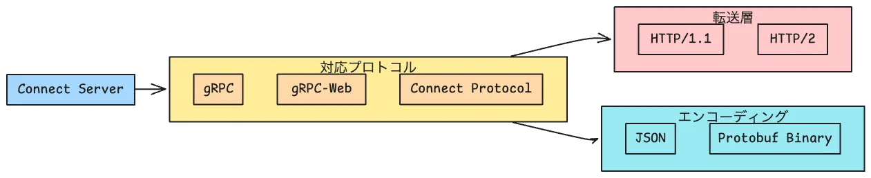 | 3 プロトコル対応 | gRPC / gRPC-Web / Connect Protocol を同一サーバでサポート |